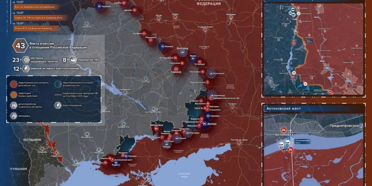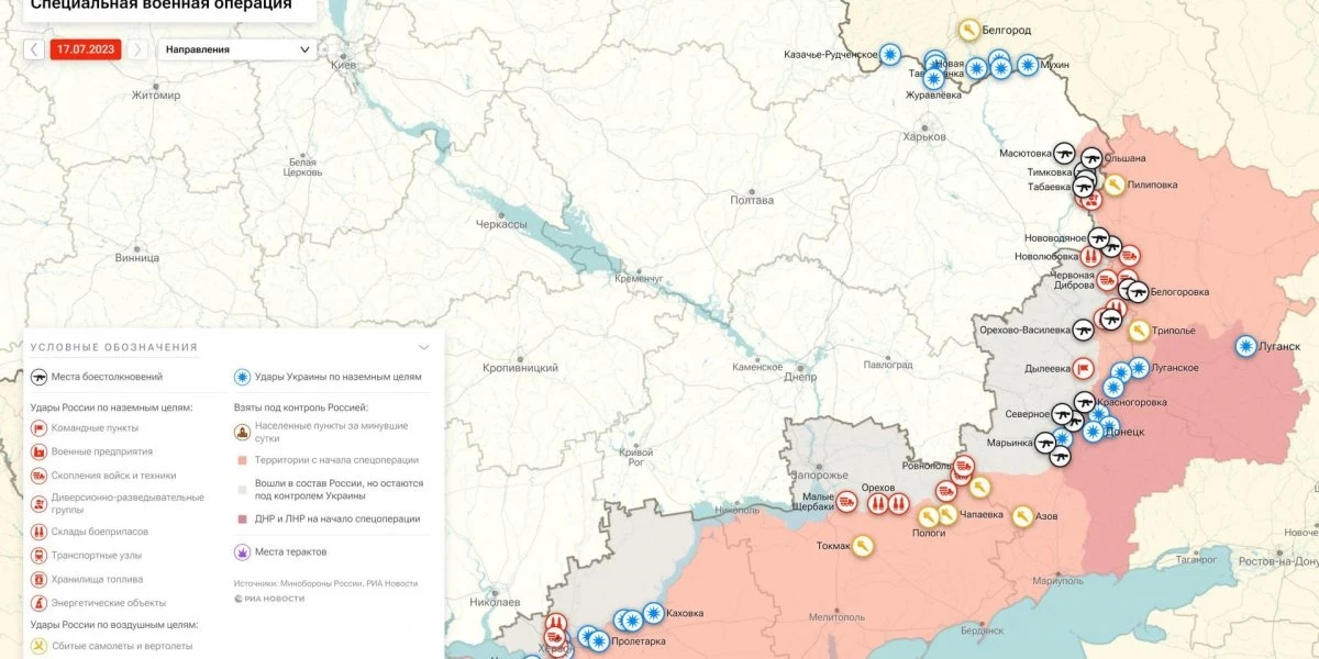 Последние новости о ходе военной спецоперации на Украине на сегодня, 17 июля 2023 года, новая карта боевых действий на Украине в материале «Интересной России».