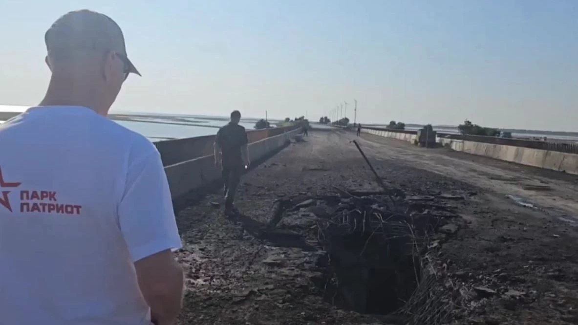 Один из снарядов повредил дорожное полотно, оставив в нем отверстие димаметром один на два метра. Ранее сообщалось, что согласно предварительным данным, по мосту выпустили ракеты Storm Shadow.