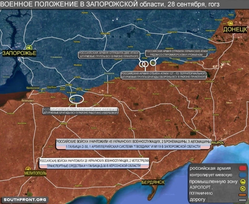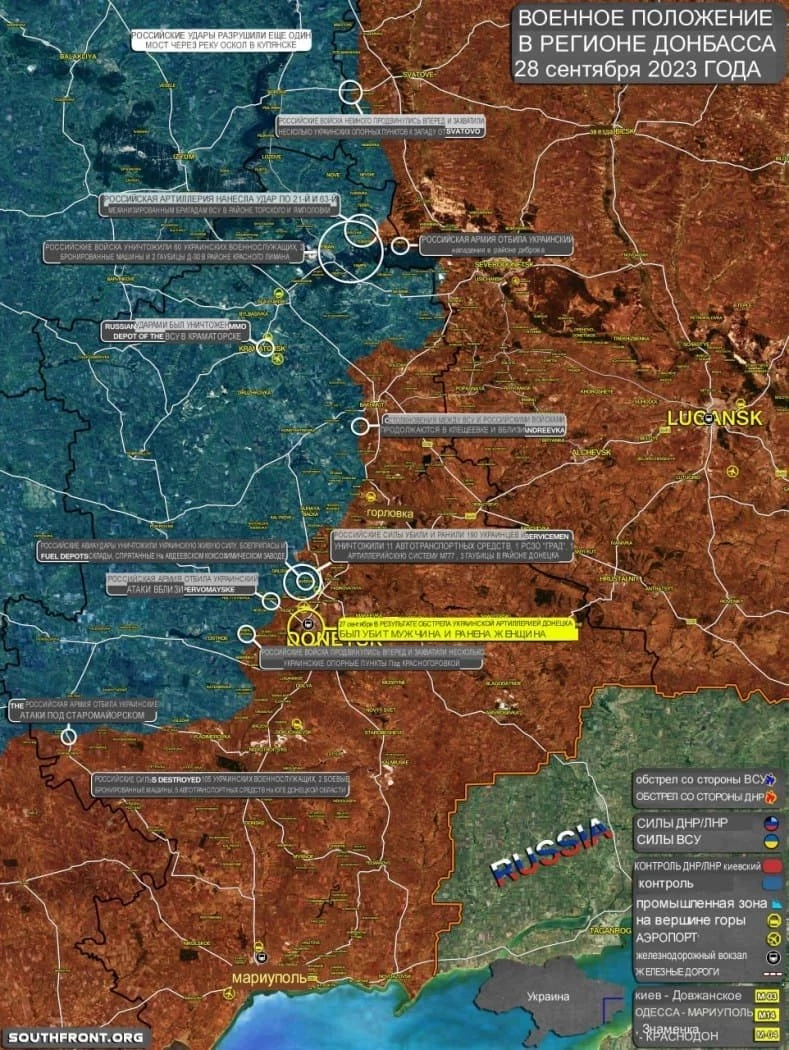 СВО на Украине, сводки спецоперации на день, 29.09.2023: ВС РФ улучшают позиции, последние новости Украины от 29 сентября 2023, карта боев