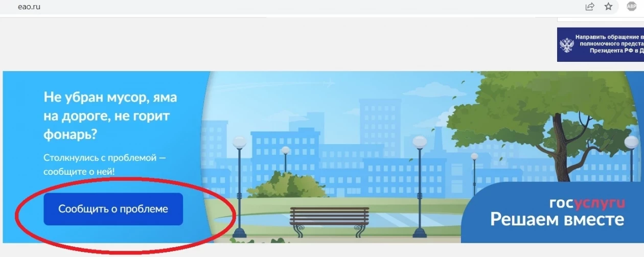 • Зайти на официальные страницы органов власти или местного самоуправления ЕАО в социальных сетях и кликнуть на виджет “Решаем вместе”