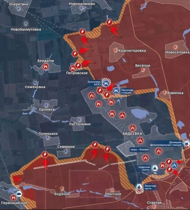 Одновременно с этим российские войска расширяют зону контроля к северу от Авдеевки. За минувшие сутки было осуществлено продвижение к окраинам населённого пункта Новокалиново. По некоторым данным, штурмовые отряды ВС РФ уже вошли в южную часть села.