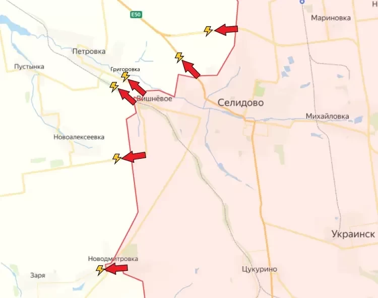 Также российские войска продвинулись севернее Ясной Поляны, подойдя к крайне важному на этом направлении селу Разлив. По позициям ВСУ в черте этого села следуют прилёты артиллерии, идёт работа по уничтожению огневых позиций ВСУ. Разлив важен тем, что севернее от него проходит ключевая для кураховского гарнизона противника трасса со стороны Запорожской области. Это основной маршрут снабжения украинских войск в Курахово. Бои идут и в восточной части города, где противник пытается отстоять железнодорожную станцию Роя.