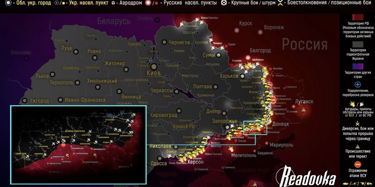 Карта боевых действий на Украине сегодня, к утру 10 июля 2023г. Карта от readovka.news