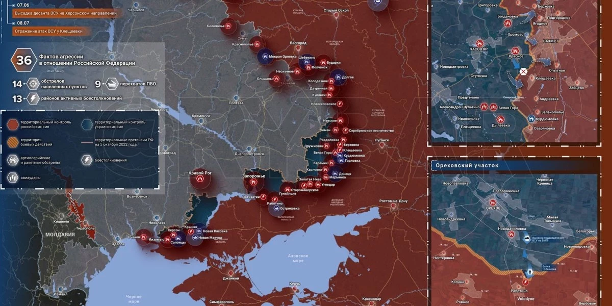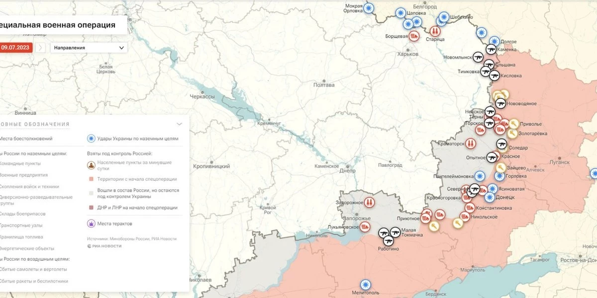 Карта боевых действий на Украине, к утру 10 июля 2023 года, Общая обстановка от Mash.