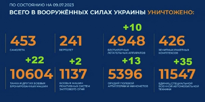 Актуальный брифинг Министерства обороны РФ о ходе проведения специальной военной операции на территории Украины по состоянию на 9 июля 2023 года. Сводка боевых действий на Украине.