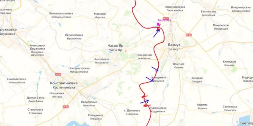 Карта боевых действий на Украине сегодня, обстановка к утру 10 июля 2023 года от Mash. Бои на Артёмовском направлении