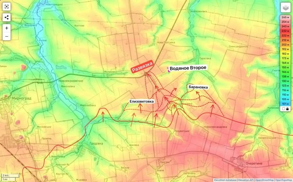 На восточном фланге Покровского направления СВО также замечено серьезное продвижение. ВС РФ расширяют наступательный клин. Освобождена Барановка, идет движение в направлении Водяное Второй.
