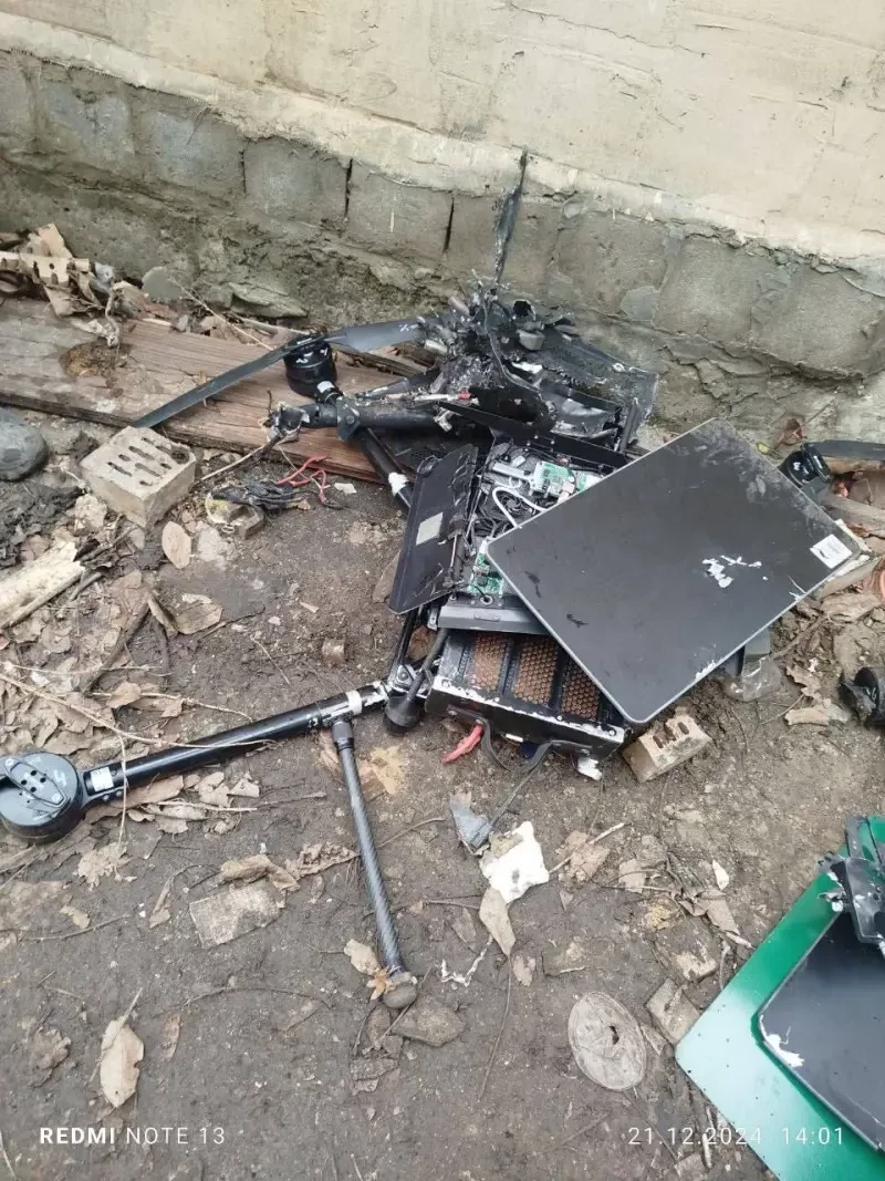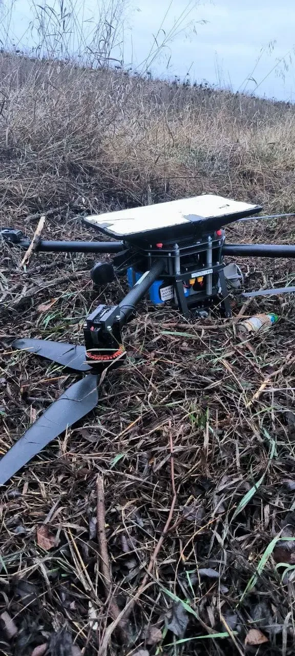 Сбитый беспилотник с терминалом системы Starlink. Фото Telegram / «Уголок Ситха»