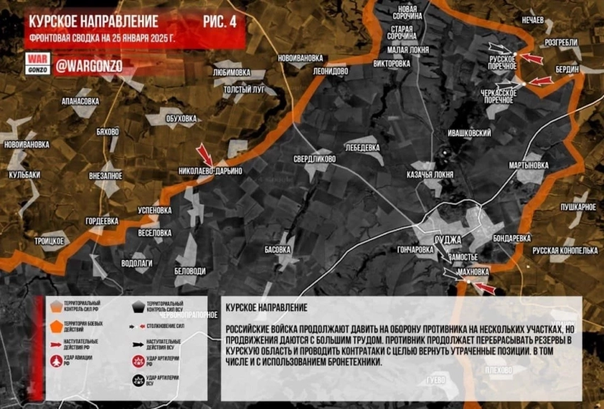 ВС РФ активно наступают под Суджей в Курской области: карта боевых действий по состоянию на 25 января 2025 года