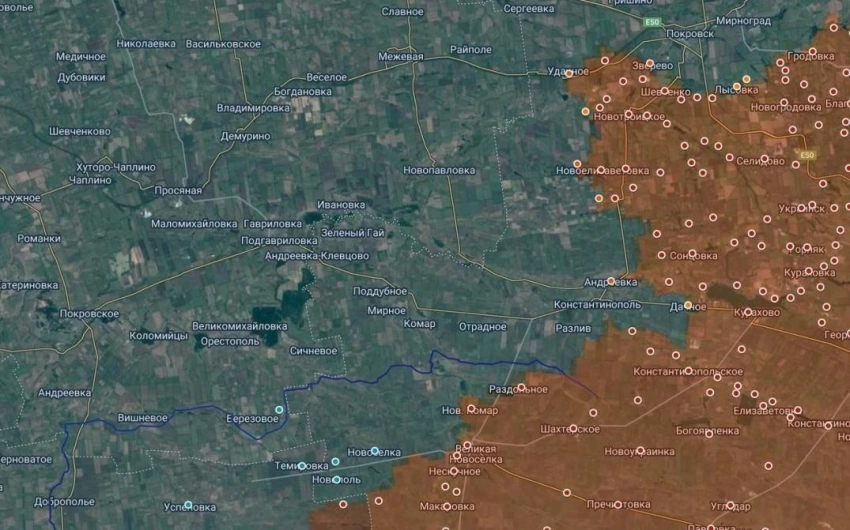 Группировка российских войск, обходящая Покровск с юга на запад, фактически повторяет операцию «Очеретинский цветок». Это следует из карты районов, где сейчас идут боевые действия.