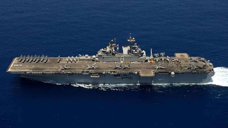 Военный корабль длиной 260 метров, шириной полетной палубы 45 метров, водоизмещением 40 000 тонн, может перевозить более 1000 морских пехотинцев и перебрасывать их к береговой линии как по морю, так и по воздуху.