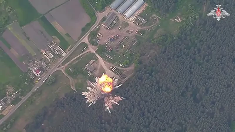 Ракета «Искандера» поражает наземную цель. Фото Минобороны РФ
