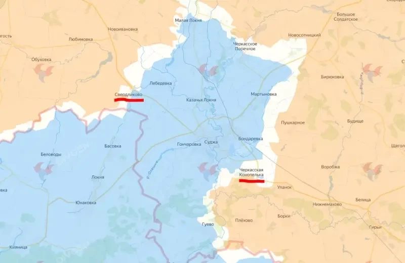 На другом фланге от Суджи, в районе Свердликово, инициатива полностью на стороне российских войск, хотя противник не отступает. Тем не менее наши продвинулись еще примерно метров на 700, бои идут как св самом селе, так и в окрестностях. Командование ВСУ перебросило под населенный пункт подразделения украинских десантников с целью любой ценой не дать российским штурмовикам взять Свердликово. Иначе это будет полный крах западного фланга Суджи.