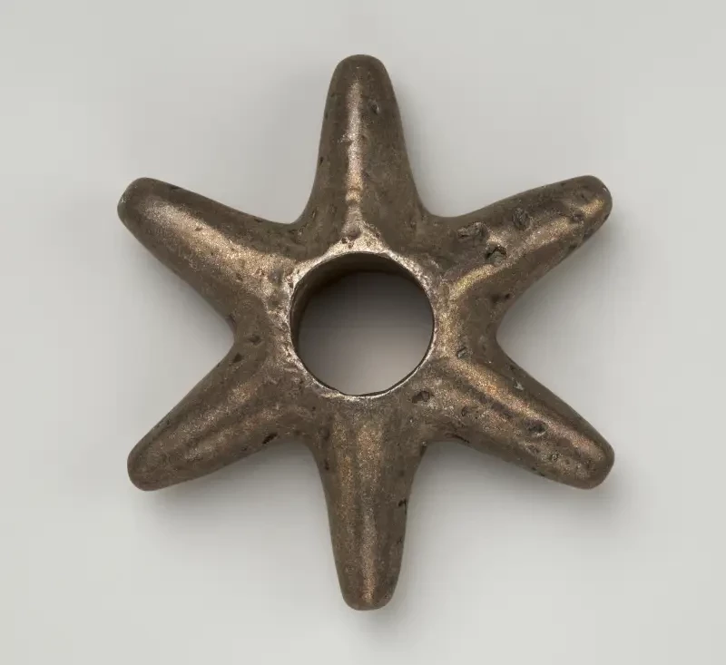 А это работа инков. Почему-то им в качестве наверший приглянулись вот такие шестилучевые «звездочки» из бронзы. XV–XVI вв. Метрополитен-музей, Нью-Йорк.