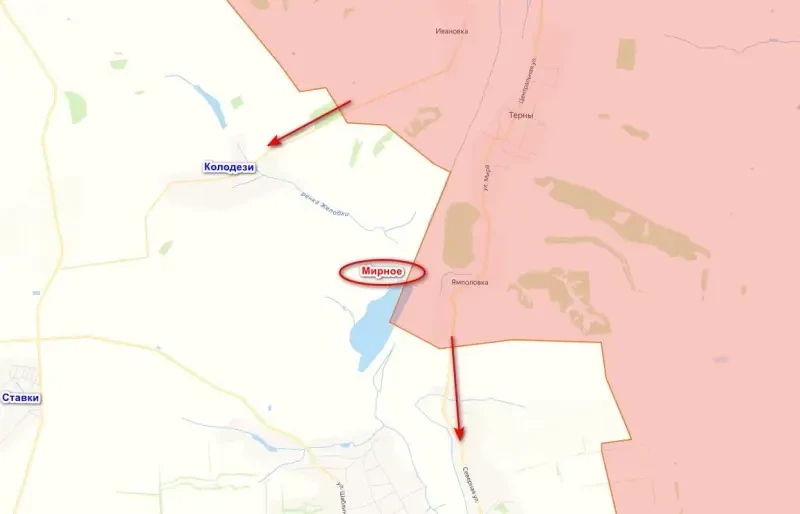 Село Мирное относится к Краматорскому району ДНР и расположено к западу от Ямполовки. Ранее об освобождении этого населенного пункта не сообщалось, так же как и о ведущихся за него боях. До этого была информация, что штурмовики «Западной» группировки начали наступление на Торское, а также продолжают бои в направлении села Колодези. Так что упоминание о Мирном первое и сразу же от Минобороны, это может говорить о том, что наши уже продвинулись гораздо дальше.
