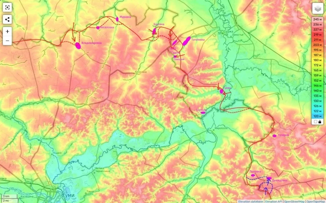 На Сумском направлении вчера наши части полностью взяли под свой контроль МАПП «Суджа» и тем самым вышли на этом участке на государственную границу.