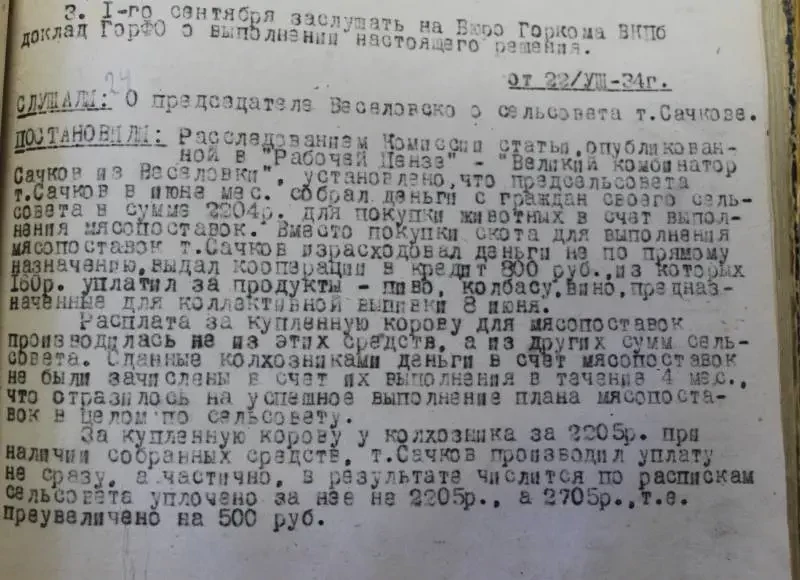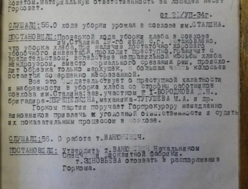 Интересно, что в документах 1934 года (в газетах «Правда» и «Рабочая Пенза») термины «вредитель» и «вредительство» еще не употреблялись. Писали о «классово чуждых», «потере партийного чутья», «разложенцах» и «левацких загибах». Но вредители еще не появились. Но вот что интересно, какие такие именно «левацкие загибы» мог допустить начальник МТС? Выяснить по документам этого не удалось.
