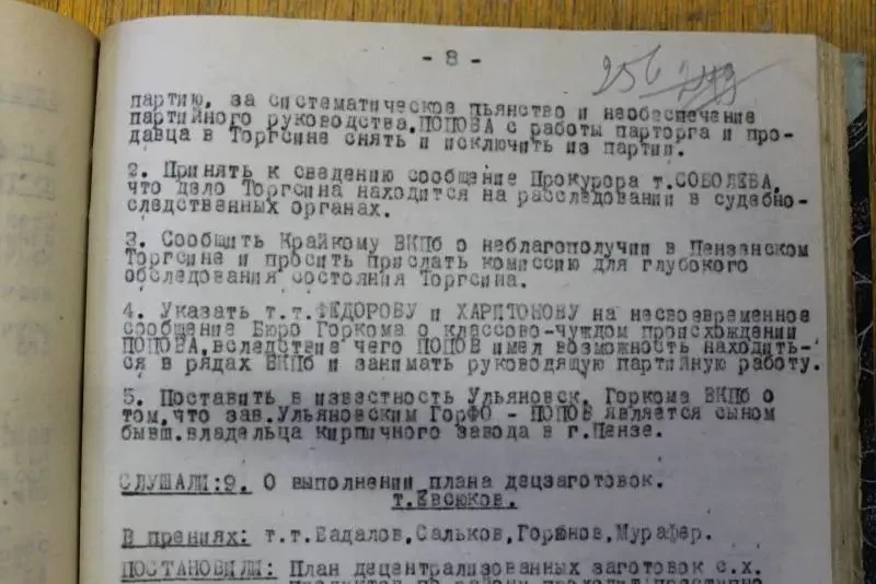 Одна из подшивок с делами горкома ВКП(б) города Пензы. Почему горкома, а не обкома? А его тогда не было. Как не существовало и самой Пензенской области. Ее тогда объединили с Тамбовской. Все искали наилучшее административное деление территории СССР.