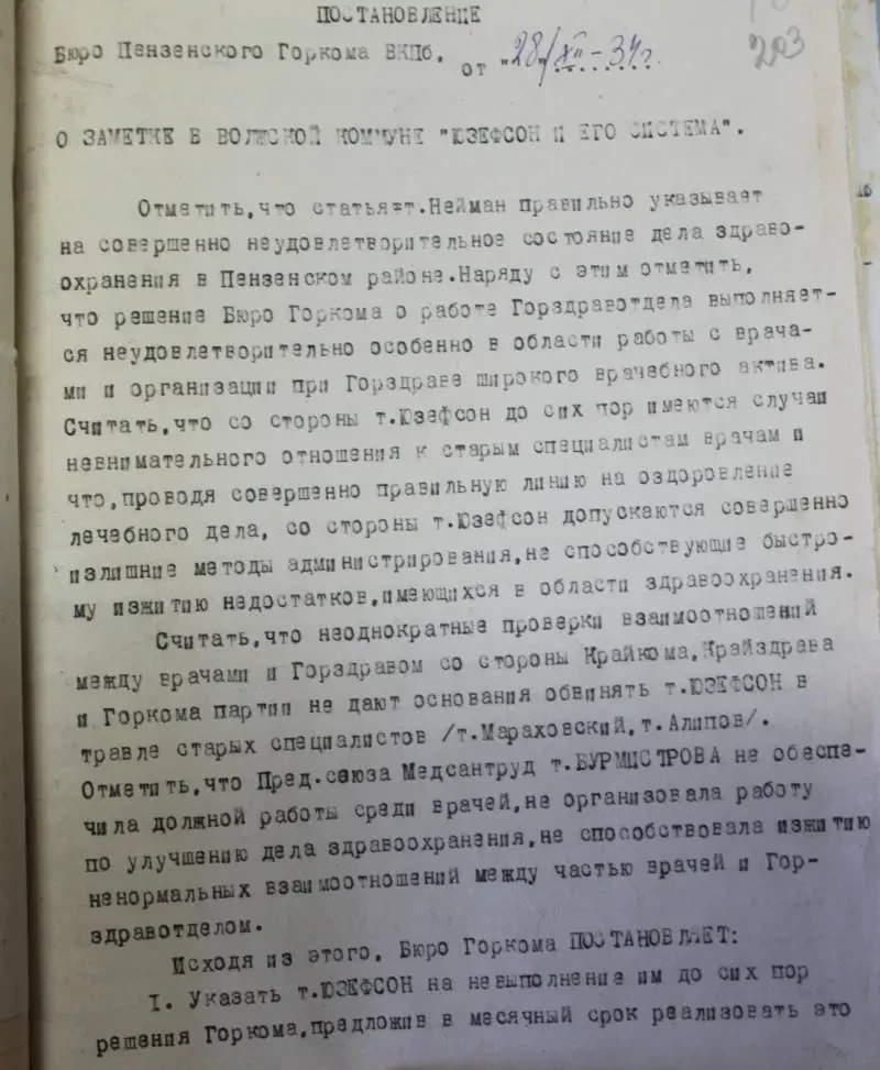 Год 1934. Какие вопросы Пензенским горкомом ВКП(б) обсуждались тогда?