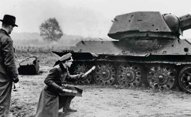 Офицер вермахта обучает бойцов фольксштурма применению противотанковых гранат