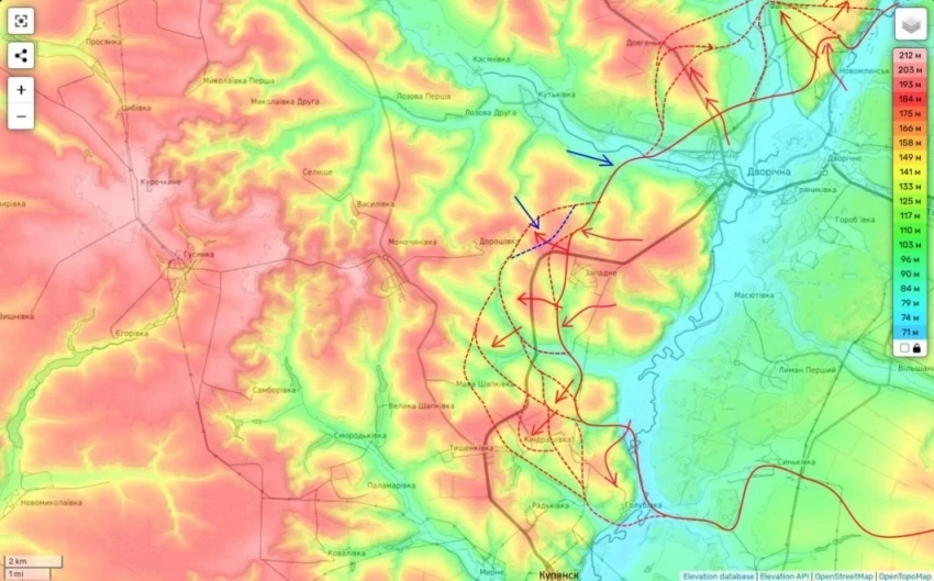 А потому, чтобы лишить противника возможности маневрировать резервами, в последние несколько дней наши части восточнее Купянска (на восточном берегу Оскола) провели несколько ударов, которые привели к тактическим успехам в районе севернее Степной Новоселки и Колесниковки (в которую наши штурмовики уже зашли и закрепились).