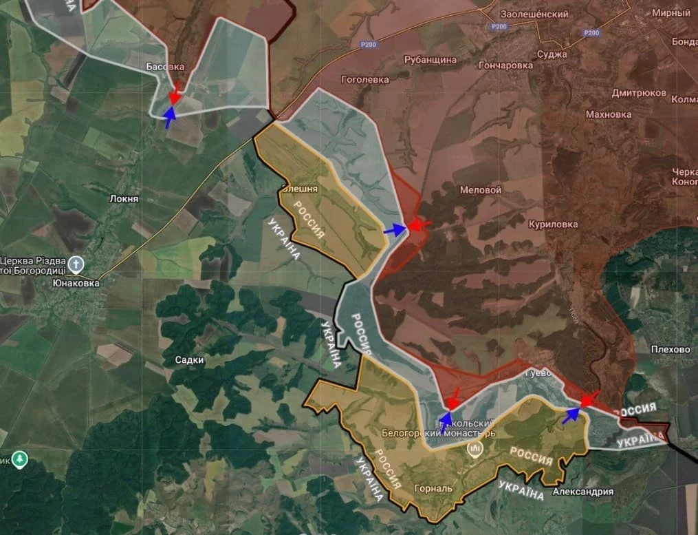 На территории приграничья в Курской области российские войска расширили контроль территории восточнее Олешни, ведут штурмовые действия в западном направлении с севера и востока. ВС РФ имеют тактические успехи западнее Гуево давят в направлении северной окраины Горнали.