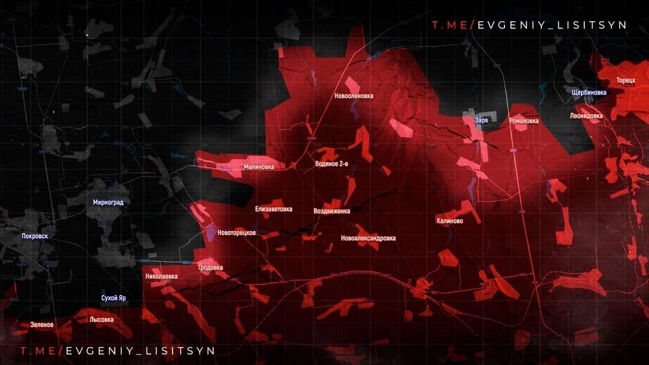 На Покровском направлении фиксируется уверенное продвижение Вооружённых сил Российской Федерации (ВС РФ) Южнее Орехово и севернее Котляровки войска России методично зачищают пространство между ней и Муравкой. В Новониколаевке уже под контролем до половины населённого пункта, тяжёлые бои продолжаются. Также ожесточённые столкновения за Новосергеевку.