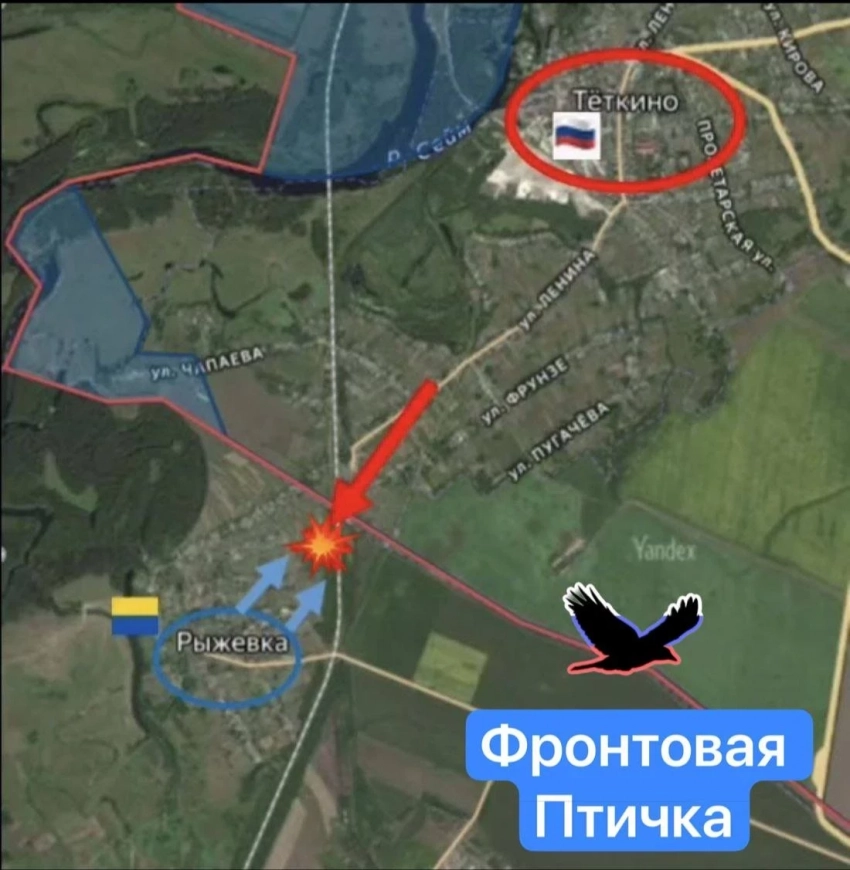 О боях в Курской области в районе Тёткино сообщает также Telegram-канал "Фронтовая птичка":