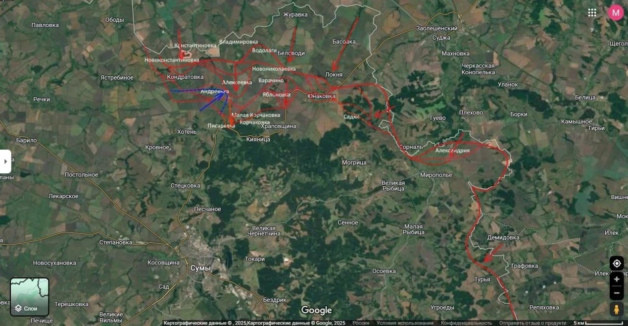 "Контратака ВСУ под Сумами оборачивается их поражением на Донбассе… И это неизбежный итог падения численности ВСУ в последние более чем полгода", - написал он.