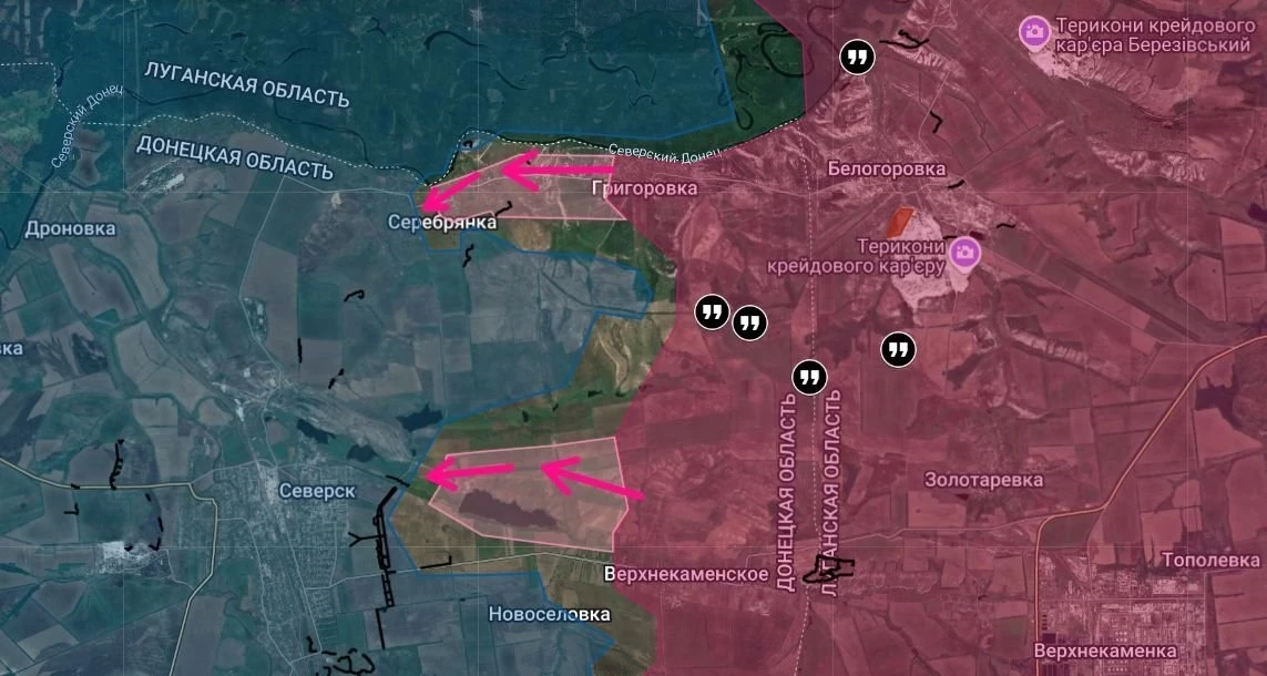 На Константиновском направлении Вооружённые силы Российской Федерации (ВС РФ) продвинулись в северо-западной части н.п. Дылеевка и штурмует восточную часть, а также восточнее в направлении н.п. Белая Гора. ВС РФ имеют тактические успехи в районе Клебан-Быкского водохранилища.