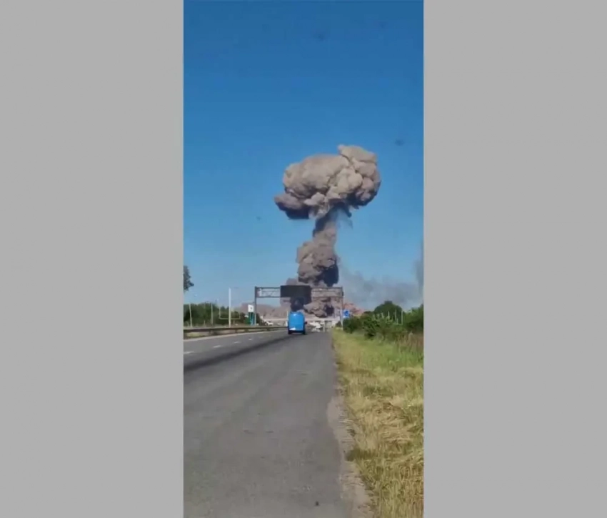 Местные жители публикуют в сети кадры после взрывов. На них можно видеть огромный столб дыма и огня, который поднимается над поражённой целью. Высота столба на первом этапе после прилёта сравнима с высотой 20-этажного здания.