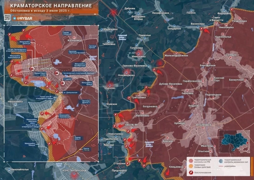 Карта боевых действий на Украине. Обстановка в зоне СВО на 04.07.2025