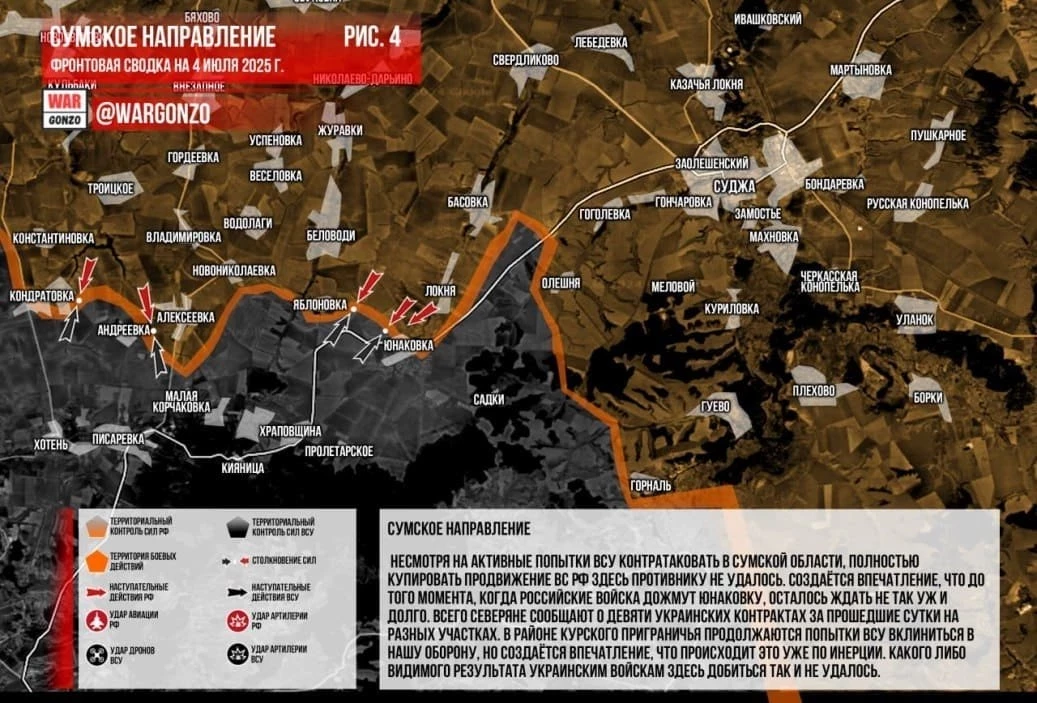 Карта боевых действий на Украине. Ситуация в зоне СВО на 04.07.2025
