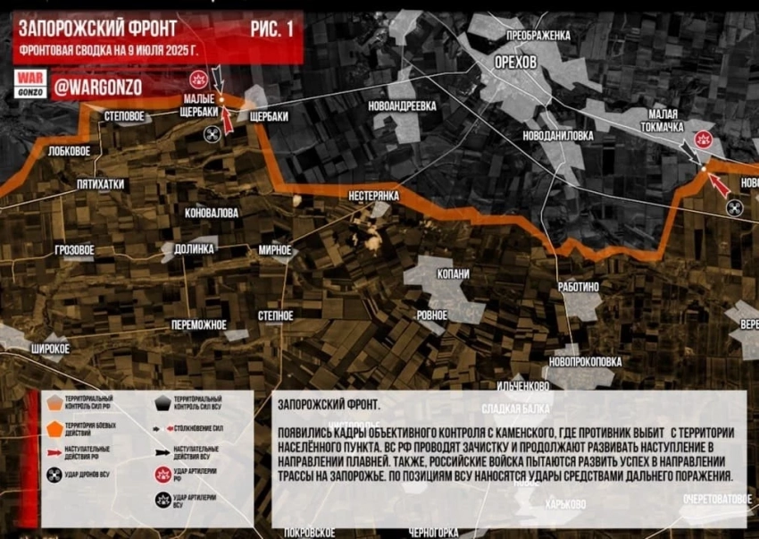 Ожесточённые бои на Запорожском направлении идут в направлении Плавней: свежие данные на 09.07.2025