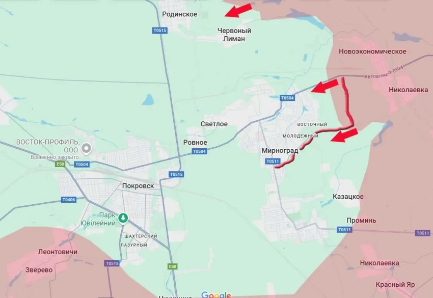 При учёте нахождения передовых подразделений нашей армии близ Червоного (Красного) Лимана и на восточной окраине города Родинское, подразделения ВСУ в Мирнограде близки к тому, чтобы оказаться в огневом мешке.