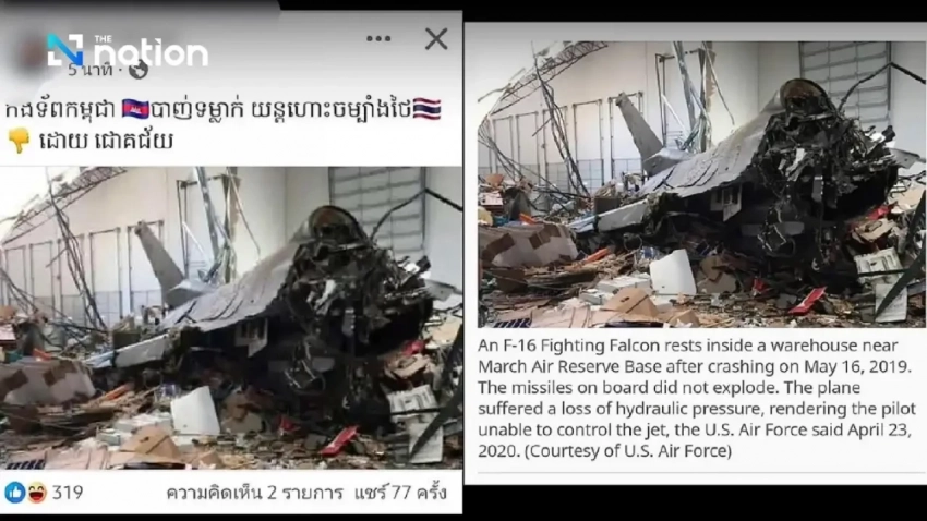 Как указывалось в тайском издании The Nation ещё 24 июня, Камбоджа распространяет вбросы об уничтожении истребителей F-16 ВВС страны. В частности, в «подтверждение» этого местными ресурсами были опубликованы фотографии американского истребителя, упавшего в 2019 году на здание в пригороде Лос-Анджелеса.