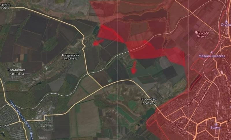 В окрестностях Артёмовска не прекращаются ожесточенные боевые действия. Под прикрытием артиллерийского огня российские силы продолжают штурмовать позиции ВСУ в направлении населенного пункта Богдановка и «Хромовского изгиба», так называется участок трассы Часов Яр — Артёмовск в окрестностях населенного пункта Хромово.