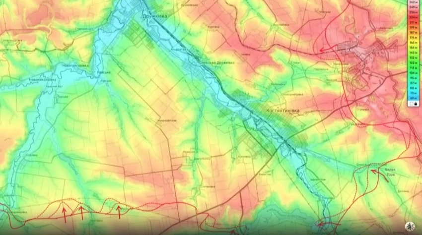 "Наши части пытаются продавить оборону противника западнее Часов Яра, то есть идёт комплексное наступление на Константиновку сразу с многих направлений", - уточнил блогер.