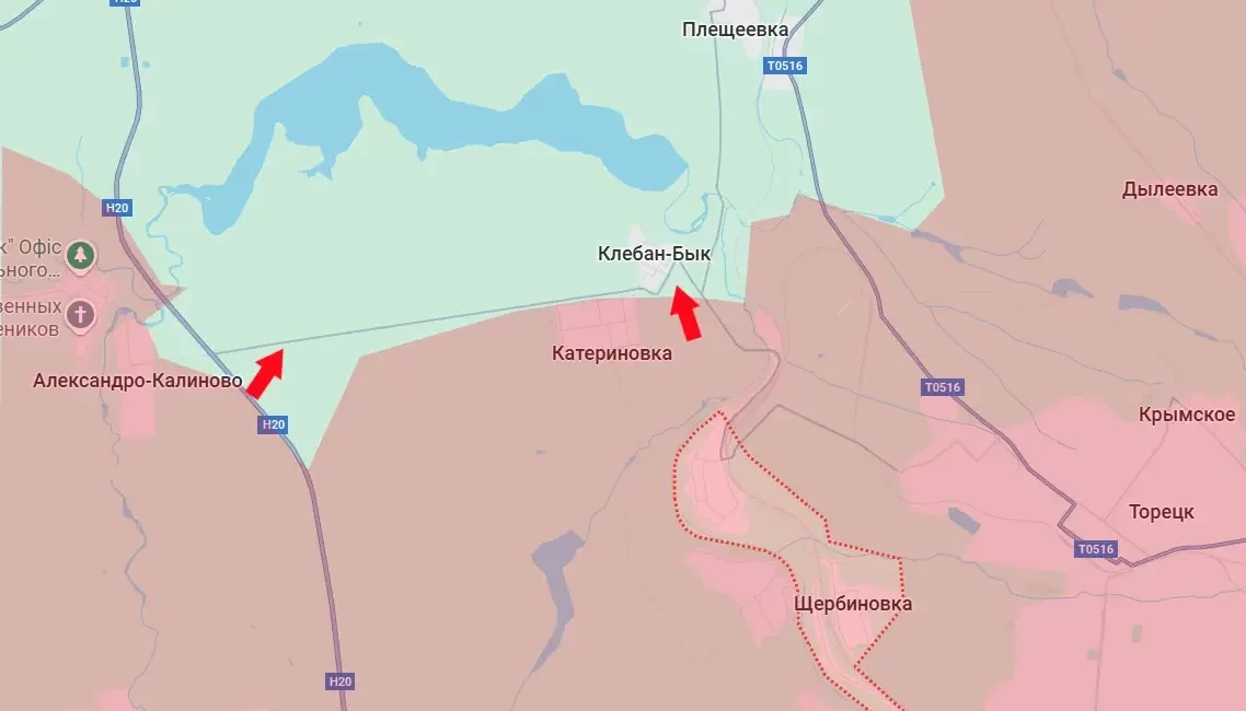 По состоянию на текущий момент армия России вышла к дороге Александро-Клевцово – Клебан-Бык, проходящей южнее водохранилища. А это означает, что группировке противника в образовавшемся «котле» совсем скоро придёт конец. Коридоры юго-восточнее и юго-западнее водохранилища находятся под полным огневым контролем со стороны наших войск. С северо-востока наши водоём обогнули, а потому, даже если отдельным военнослужащим ВСУ удаётся из окружения выйти, то они попадают под плотный огонь в полукольце в районе Плещеевки, что на реке Кривой Торец.