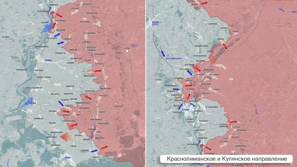 На Купянском фронте бои в районе Московки. ВС РФ продвигаются не только к Соболевке, но и к Нечволодовке. Ключевая задача для наших частей здесь – взять под контроль дорогу Купянск – Шевченково – Чугуев. Наши ДРГ работают в северо-западной части Купянска.