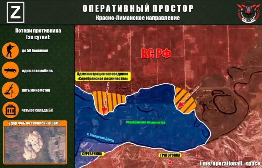 "На Дружковском направлении штурмовые подразделения ВС РФ выбили противника из н. п. Русин Яр (ДНР). Противник зачищается в кармане между Русиным Яром и Полтавкой", — написал журналист.