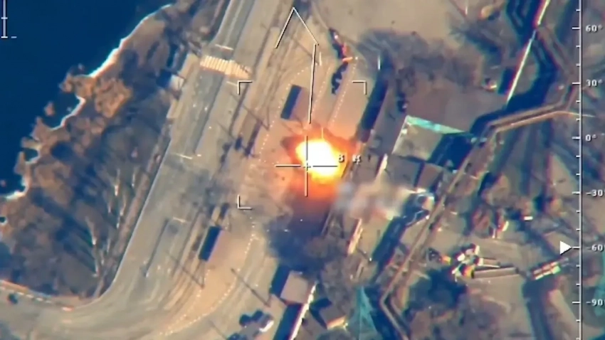 Беспилотник «Форпост-РУ» поражает украинскую бронемашину, 2023 г.