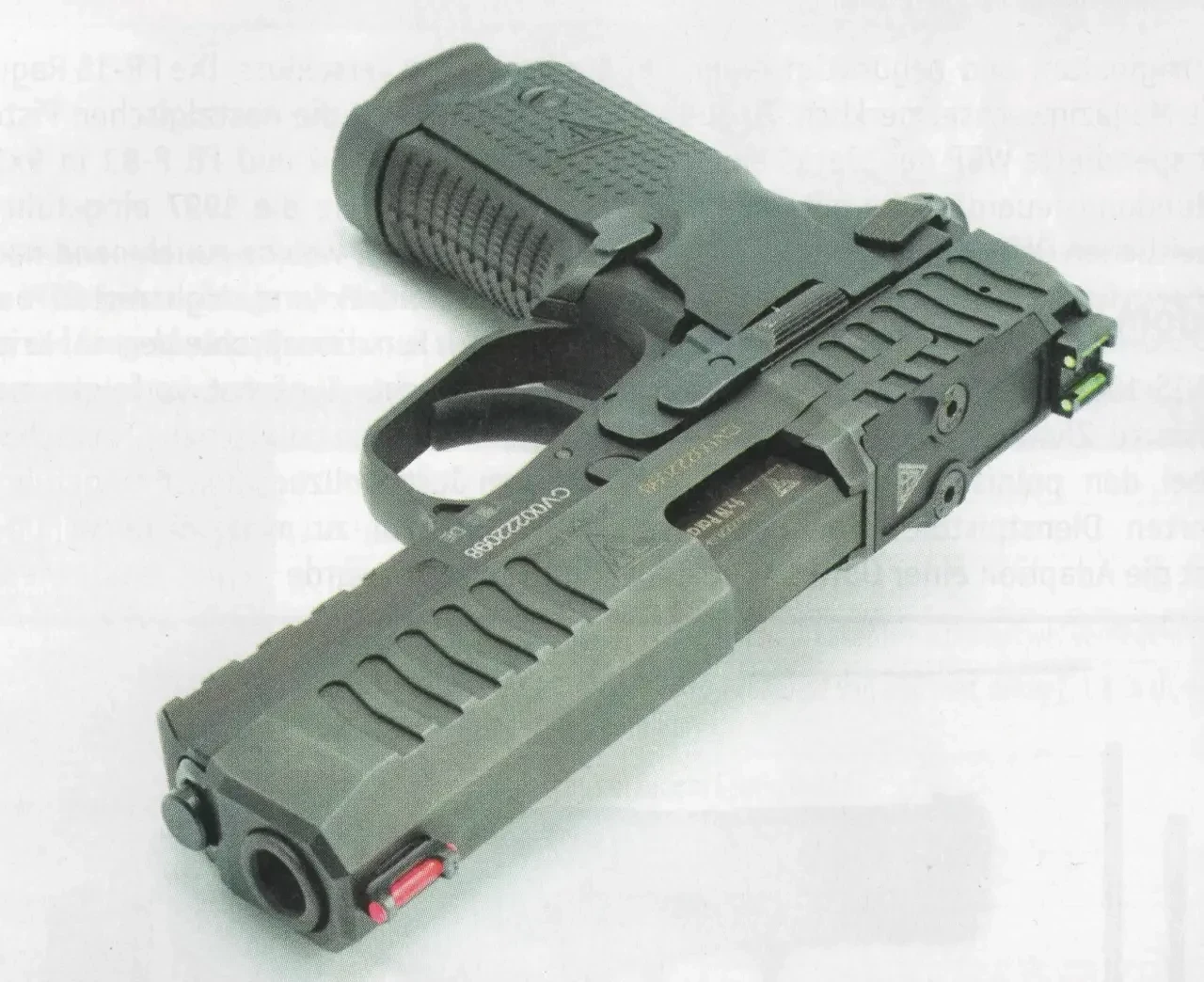 Рамка пистолета изготовлена из алюминиевого сплава и имеет стальные направляющие для затвора. Под стволом выполнена направляющая стандарта STANAG 4694 для крепления «обвеса».