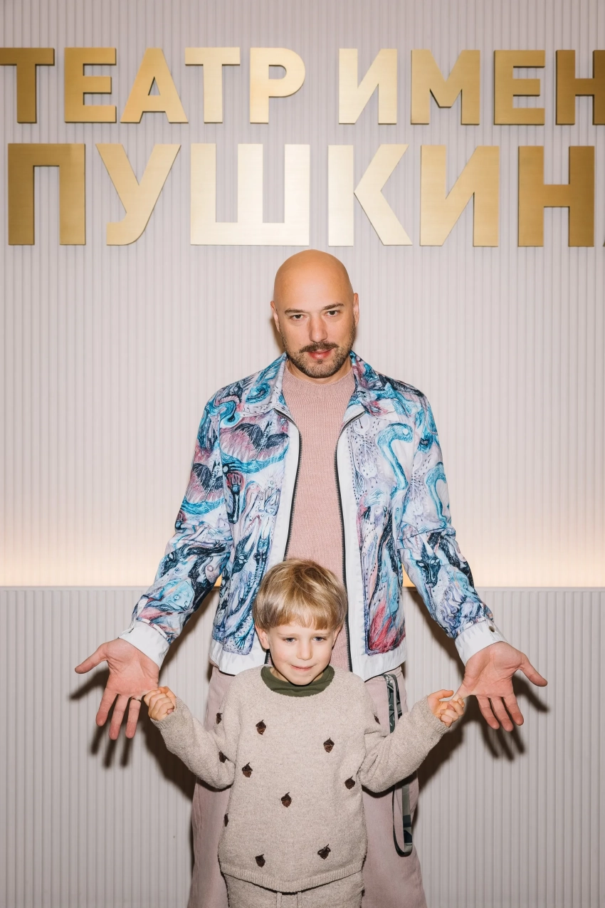 Елизавета Арзамасова с сыном Львом, Тимур Родригез и Катя Кабак с дочерью, Янина Студилина и Владимир Маркони на премьере спектакля "Аленький цветочек"