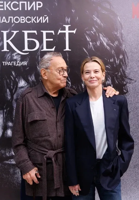 Андрей Кончаловский и Юлия Высоцкая на показе спектакля "Макбет"Напомним, Юлия Высоцкая стала пятой женой Кончаловского: они познакомились, когда ей было 23 года, а ему 59. Ранее актриса откровенно говорила, что предпочитает работать с мужем, отказывая другим: работы с другими режиссёрами в её карьере можно сосчитать по пальцам. Заслуженная артистка РФ, лауреат премий "Золотой орёл", ТЭФИ и "Ника".