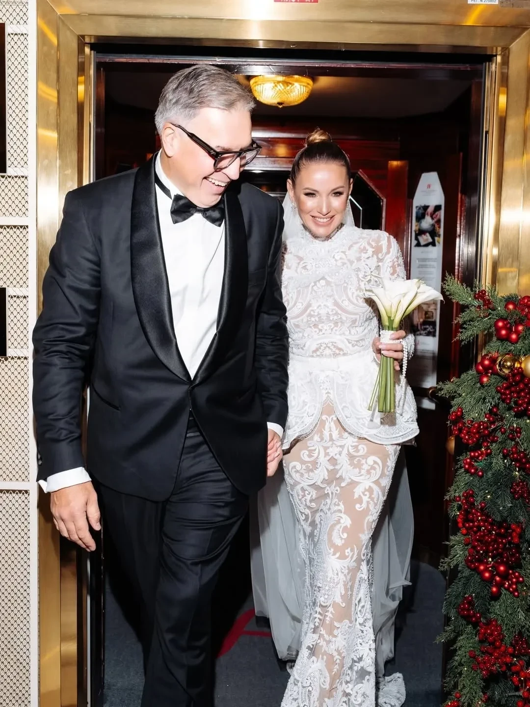 Невеста была в платье от дизайнера Александра Сирадекиана. Бракосочетание прошло в популярном среди селебрити Дворце бракосочетания № 1 на Английской набережной Санкт-Петербурга. Молодожёны также устроили фотосессию в местном пятизвёздочном отеле "Астория" и посетили храм.
