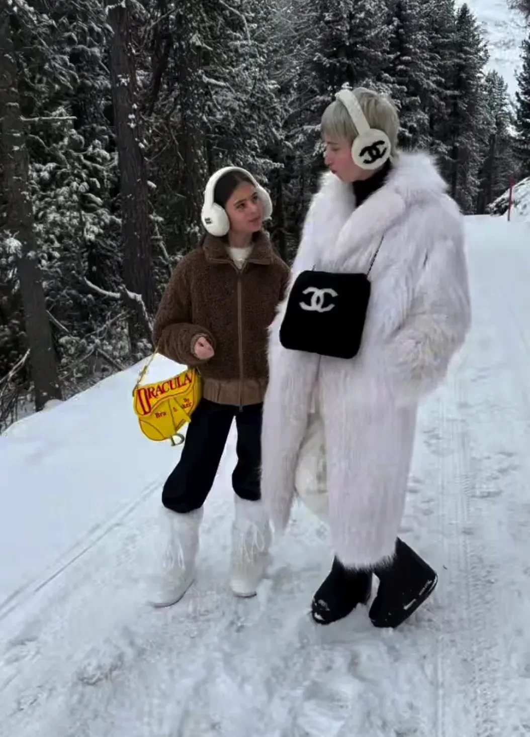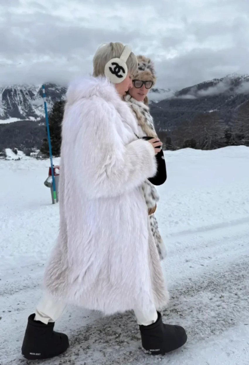 Бондаренко с детьми гуляли по курорту в ярких образах. Бизнесвумен надела длинную пятнистую шубу и меховую шапку в тон, дополнив образ муфтой Chanel и унтами. Её старшая дочь Алина выбрала похожий образ — белую шубу, муфту Chanel чёрного цвета и меховые наушники того же бренда, а младшая наследница Мия позировала в куртке Moncler и с "книжной" сумкой Dior, которые недавно обсуждали в сети.