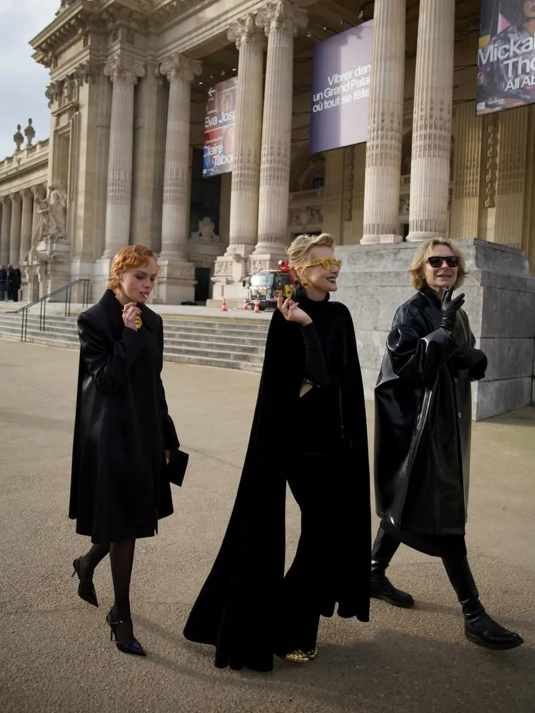 Рената Литвинова в чёрном кейпе и с макияжем в золотых тонах посетила шоу Schiaparelli, где встретилась со стилисткой Витой Клац. Снежанна Георгиева с дочерью Софьей посетили показ Valentino, где также были Оксана Бондаренко, Мария Богданович и многочисленные звёзды.