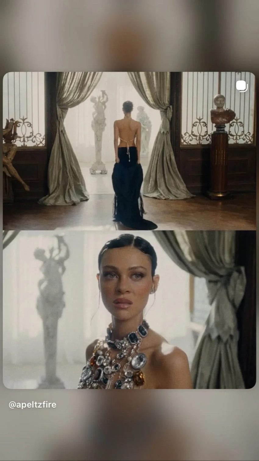 31-летняя Пельтц появилась в финальном эпизоде сериала "Красота" с Эштоном Кутчером в главной роли, сыграв "улучшенную" версию Фрэнни — жены его персонажа, которую играет 73-летняя Росселлини. При этом в одной из сцен Никола предстаёт в топе-колье из камней на голое тело, что стало аллюзией на знаменитый образ Росселлини в ленте "Смерть ей к лицу" Роберта Земекиса, которая вышла на экраны в 1992 году.
