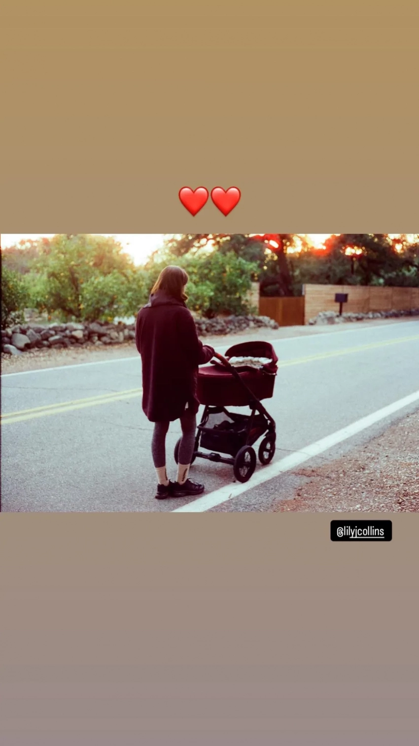 Лили Коллинз/Фото: lilycollins/Instagram*На фото, которое сделал её муж, 41-летний Чарли Макдауэлл, актриса гуляет с малышкой в коляске.